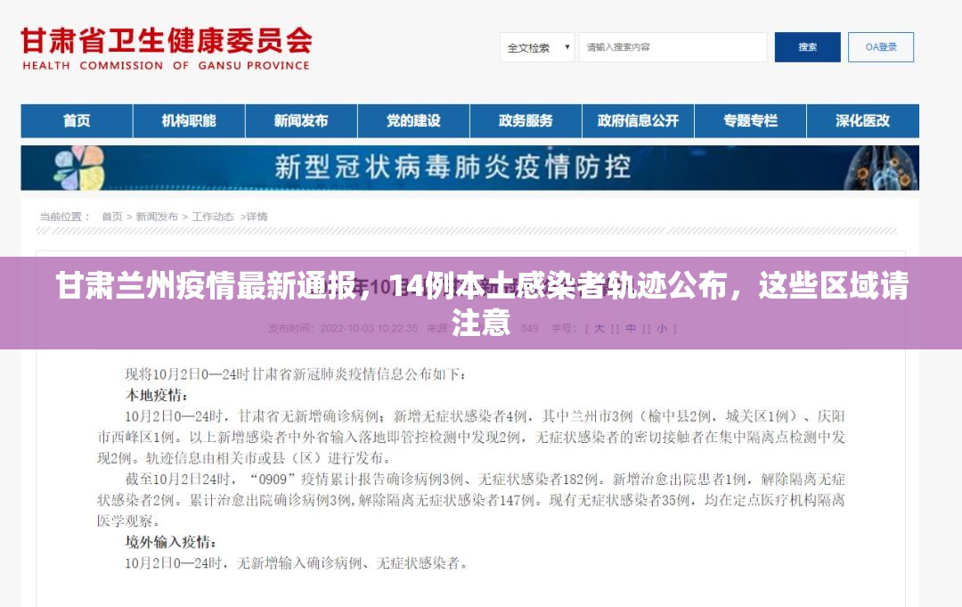 【甘肃兰州疫情最新动态:14例感染者活动轨迹及风险区域划定】根据兰州市疾病预防控制中心12月5日发布的最新通告,兰州主城区新增14例本土新冠病毒感染病例,均为奥密克戎变异株,经流行病学调查,所...