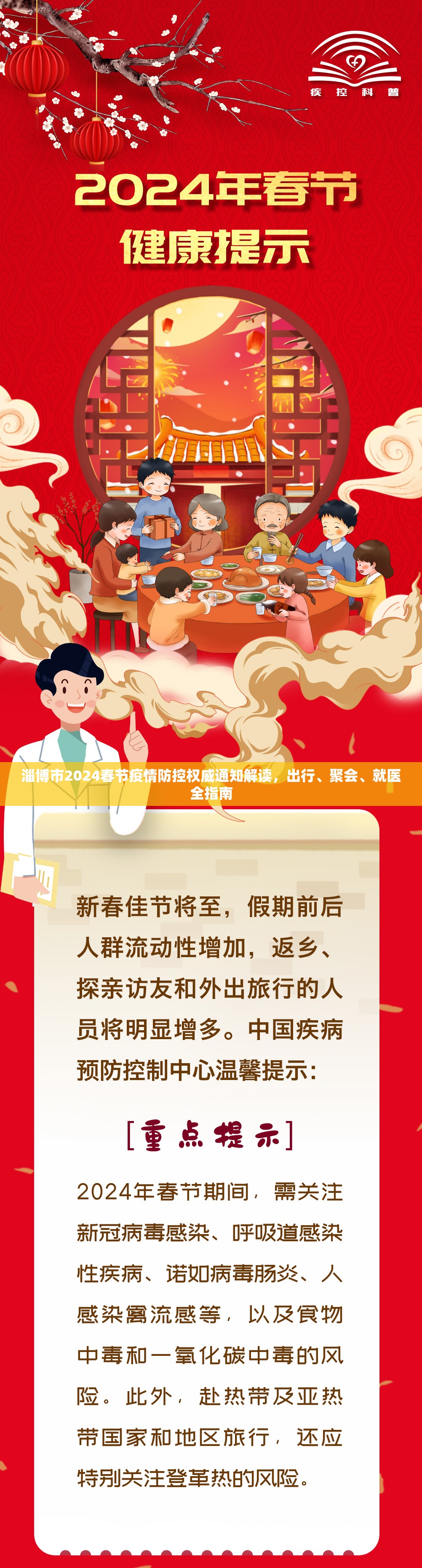 【开篇导语】随着2024年春节临近,淄博市疫情防控指挥部最新发布《2024年春节假期疫情防控指引》,针对人员流动、聚集活动、重点场所管理等方面作出详细部署,本文结合官方通告,梳理出对市民最实用的1...
