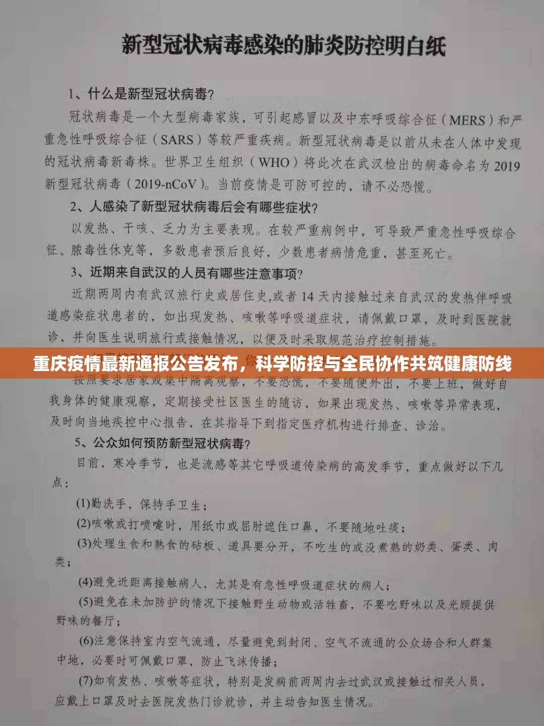 重庆市卫生健康委员会发布了最新的疫情通报公告,详细介绍了当前全市的疫情防控形势、政策措施及应对进展,这一通报不仅为市民提供了权威信息,也为全社会共同应对疫情指明了方向,在当前全球疫情反复的背景下,重庆...