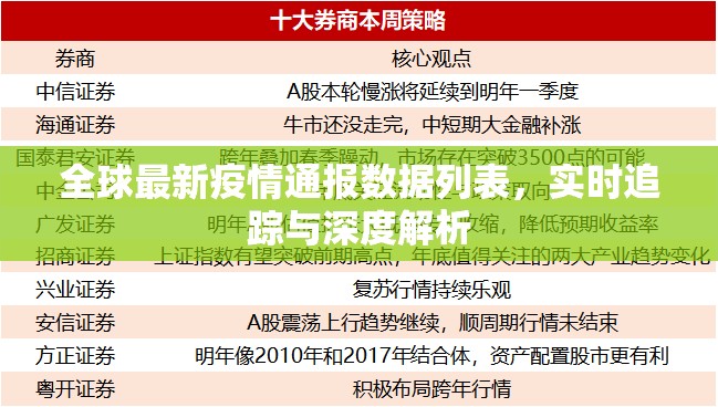 在全球化的今天,疫情数据的实时更新已成为公众、政府和国际组织关注的焦点,全球疫情最新数据表格图作为一种直观的信息可视化工具,不仅帮助我们追踪病毒传播的动态,还为决策者提供了科学依据,本文将通过分析最新...