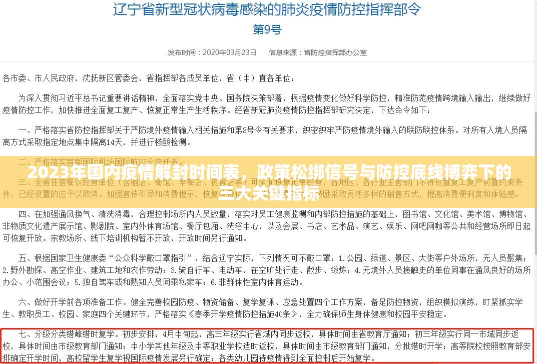 2023年第三季度起,国内疫情防控政策迎来"精准化调整"新阶段,据国家卫健委最新数据显示,全国高风险区数量较去年同期下降82%,重点城市常态化核酸筛查覆盖率稳定在95%以上,这些数据为研判解封时间表提...