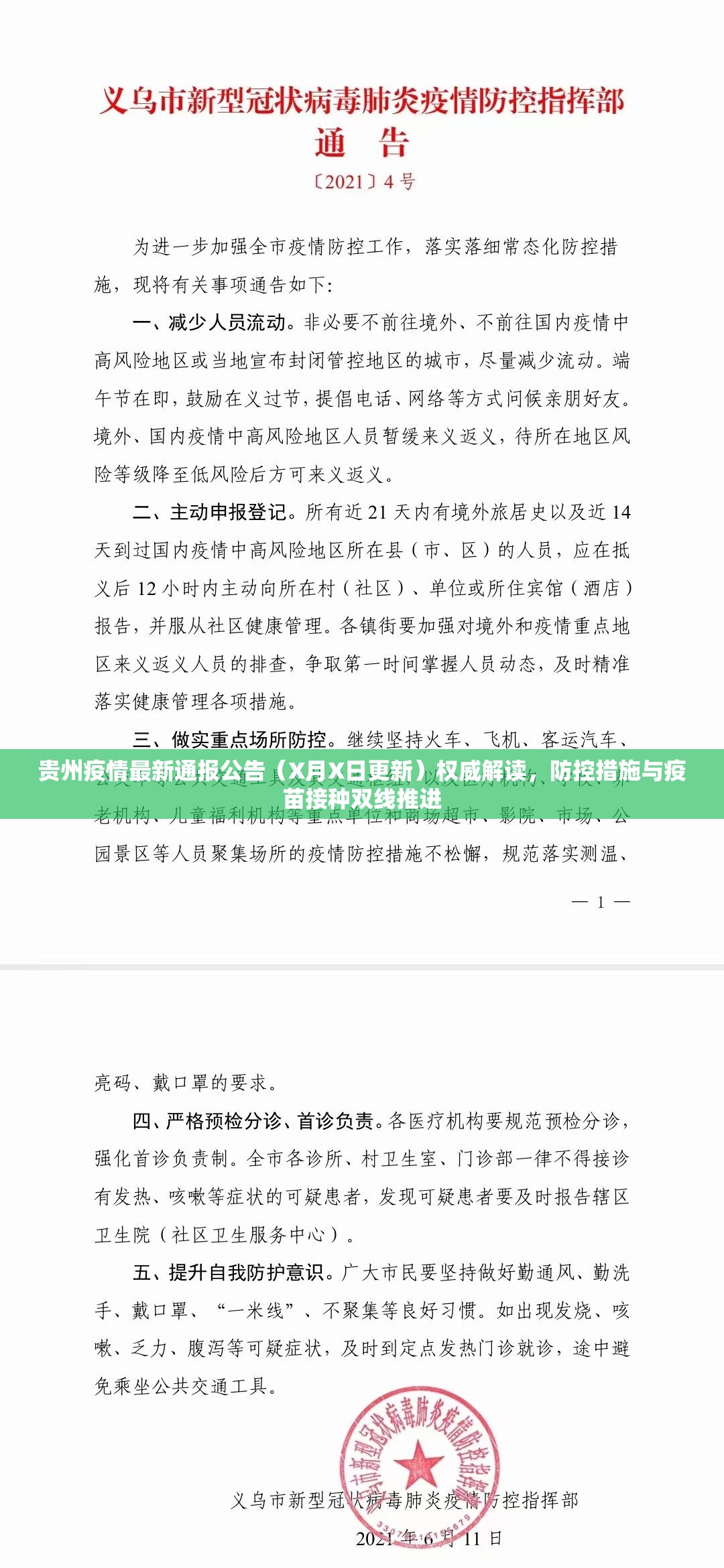 【贵州疫情防控动态速递】(2023年X月X日18:00更新)根据贵州省卫生健康委员会最新发布的《X月X日全省疫情风险提示》,全省今日新增本土阳性病例X例(其中X例为密接发现),无新增重症及死...