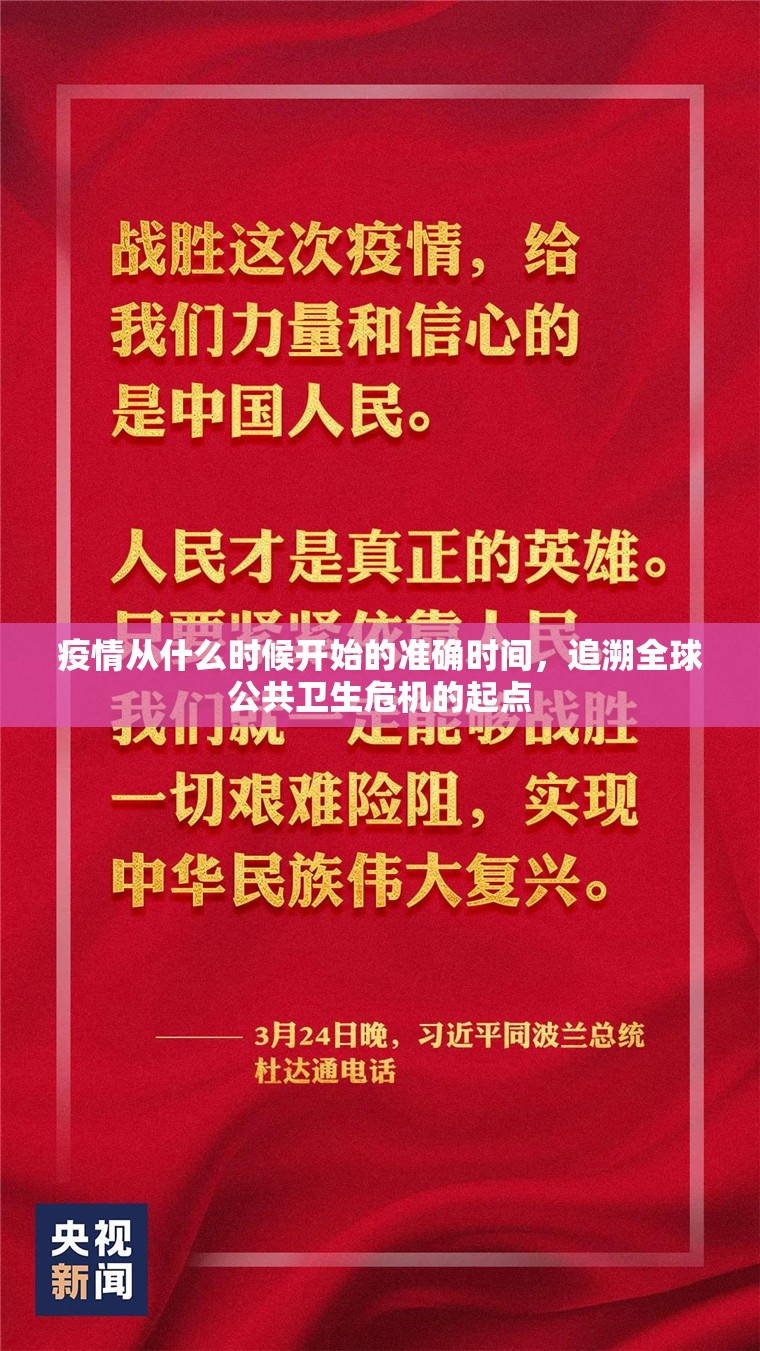 新型冠状病毒疫情(COVID-19)是21世纪全球最重大的公共卫生事件之一,它不仅重塑了各国的社会经济发展轨迹,也对人类应对突发危机的模式提出了深刻挑战,对于“中国疫情从什么时候开始发生”这一问题,答...