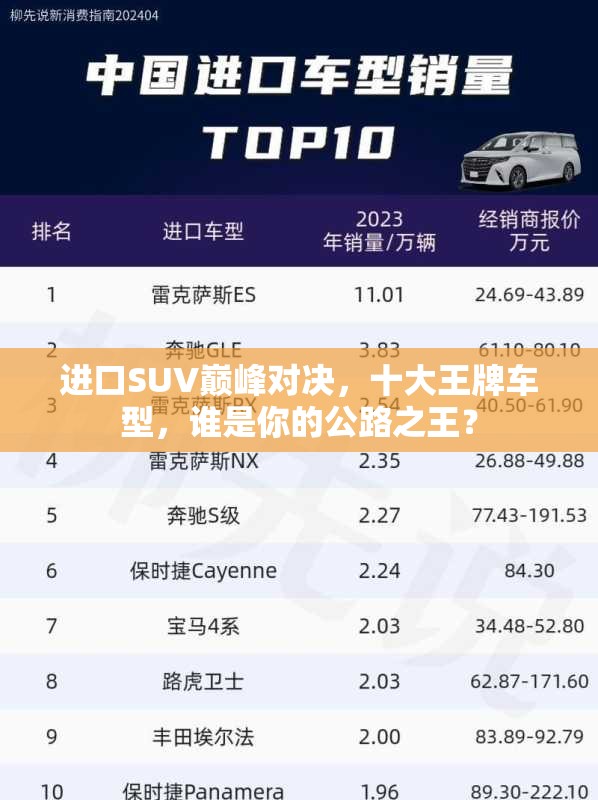 在追求品质生活与极致驾控的今天,一辆纯正血统的进口SUV早已超越了简单的代步工具,它象征着品味、实力与对未知世界的探索欲,面对市场上琳琅满目的选择,如何甄选出那颗最璀璨的明珠?我们深入盘点了当前市场上...