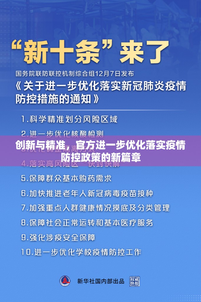 在全球疫情持续演变的背景下,中国官方近期进一步优化落实疫情防控政策,标志着疫情防控进入更加科学、精准和人性化的新阶段,这一系列调整不仅是对前期经验的总结,更是对未来公共卫生体系建设的深远布局,本文将深...