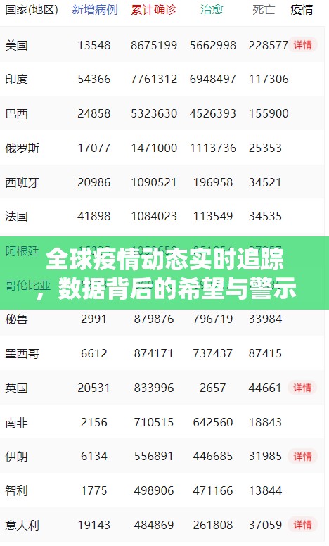 随着新冠疫情的持续演变,全球各国正面临着前所未有的挑战,疫情最新消息数据实时数据不仅成为公众关注的焦点,更是政府决策和公共卫生应对的重要依据,实时数据的更新与传播,帮助我们及时了解疫情趋势、评估风险并...
