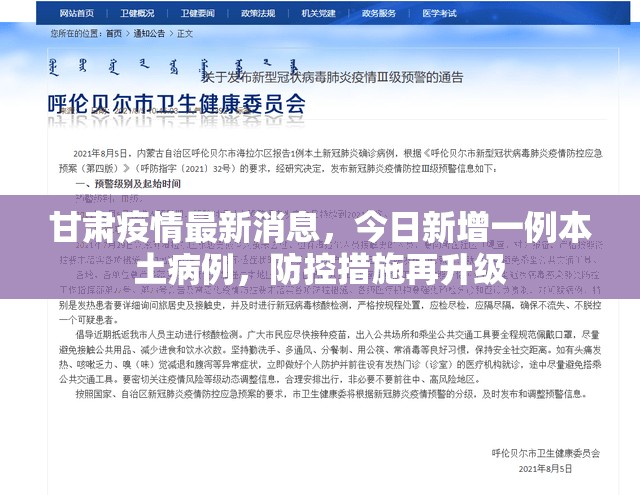 甘肃省卫生健康委员会发布最新疫情通报,截至今天(具体日期需根据实际情况填写,例如2023年10月25日)零时,甘肃省新增一例本土新冠肺炎确诊病例,这一消息引发了社会广泛关注,标志着甘肃在持续保持低风险...