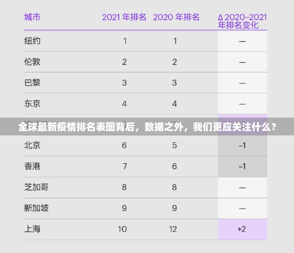 在全球疫情的持续影响下,各国疫情数据排名表已成为公众、政策制定者和研究者关注的焦点,这份排名表不仅反映了病毒的传播动态,还揭示了不同国家在公共卫生、经济和社会应对方面的差异,本文将通过分析全球疫情数据...