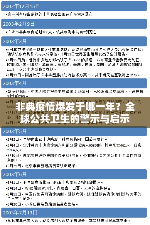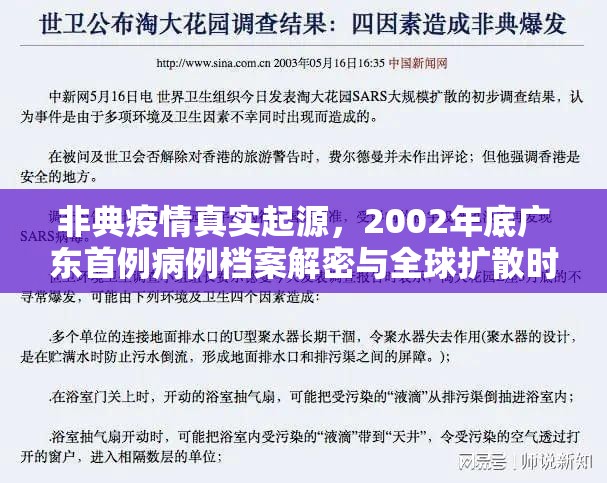 时间轴上的关键转折点(2002-2003)2002年11月16日:广东中山市发现首例非典病例,病毒溯源发现SARS-CoV-1株型2003年1月23日:北京出现首例本地传播病例,疫情进...