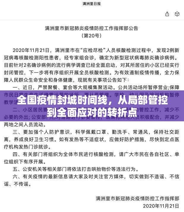 自2019年底新冠疫情暴发以来,世界各国采取了不同的防控措施,而中国的“封城”政策因其规模和影响备受关注,许多人会问:全国疫情是什么时候开始封城的呢?中国并未实施过全国性的统一封城,而是以局部、分阶段...