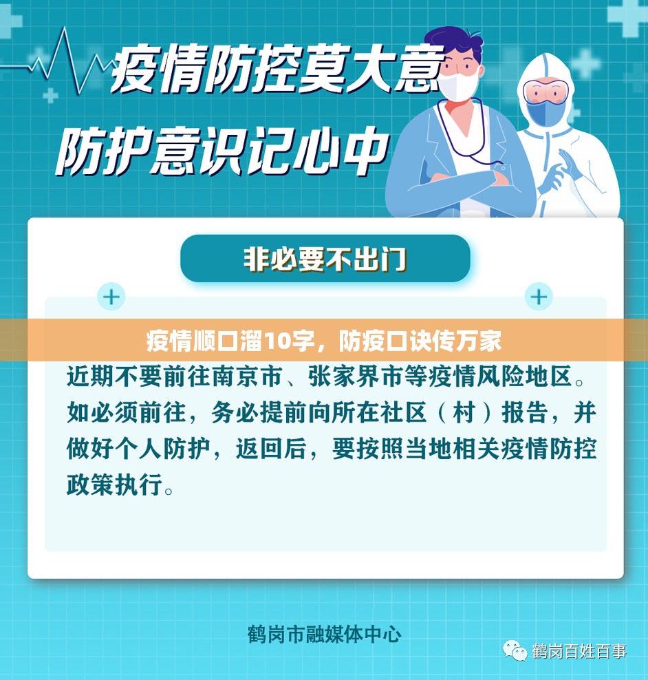 在新冠疫情的阴霾下,人们的生活节奏被打乱,但智慧的火花却从未熄灭,一句简短的“疫情顺口溜10字”——“戴口罩、勤洗手、不聚集、多通风”——悄然流传开来,成为无数家庭和社区的防疫座右铭,这短短十个字,不...
