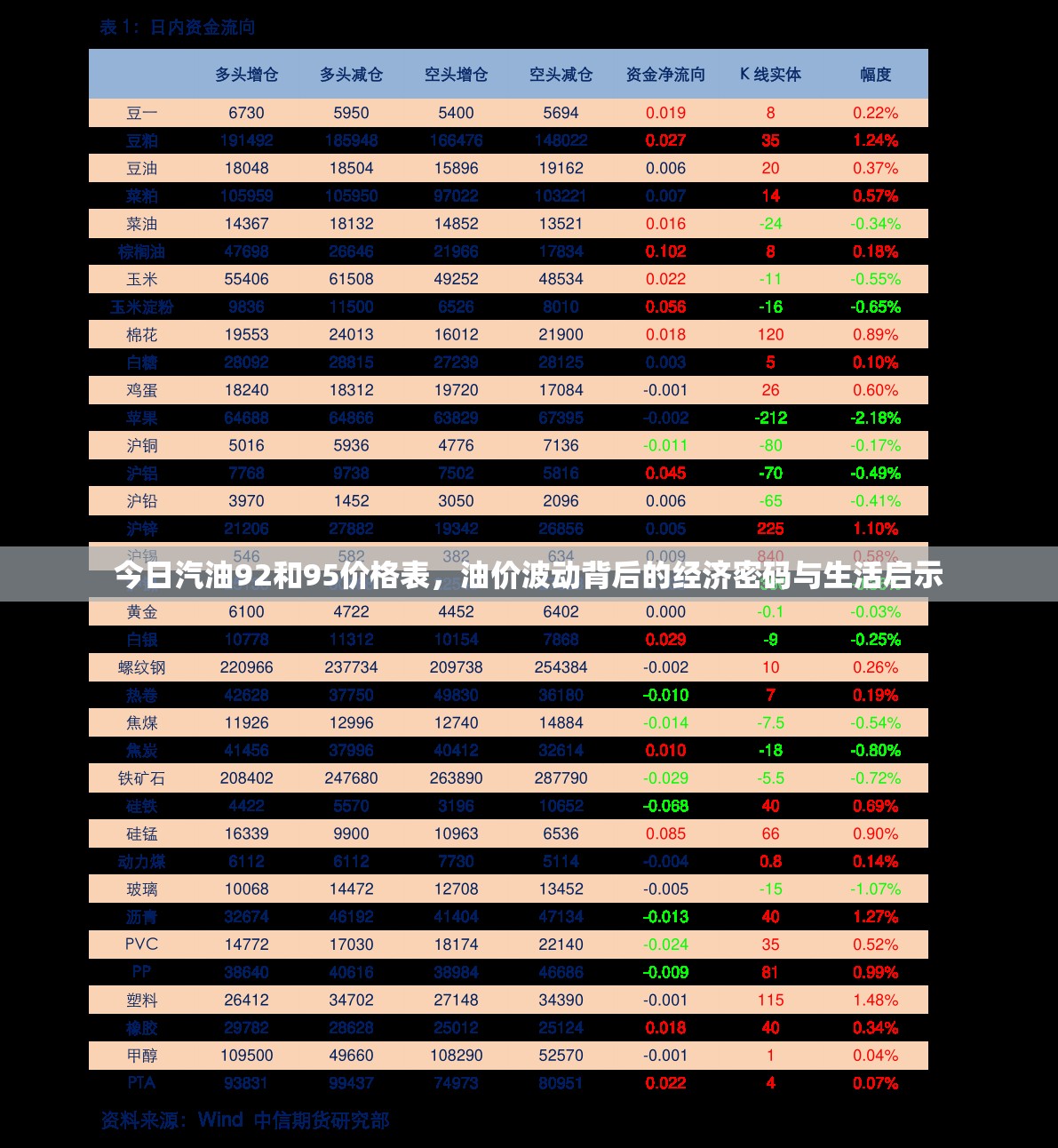 在当今社会,汽油价格已成为人们日常关注的焦点之一,无论是通勤上班、家庭出行,还是物流运输,油价的变化都牵动着无数人的神经,今日汽油92和95价格表不仅是一组数字,更是经济波动、政策调整和全球市场的缩影...