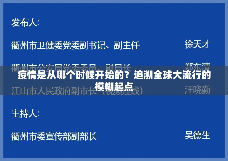 “疫情是从哪个时候开始的?”这个问题看似简单,却像一个投入历史长河的石子,激起的涟漪层层扩散,难以找到唯一的中心,它不仅是医学史上的一个时间点追问,更牵涉到病毒溯源的科学挑战、全球信息通报的政治博弈,...