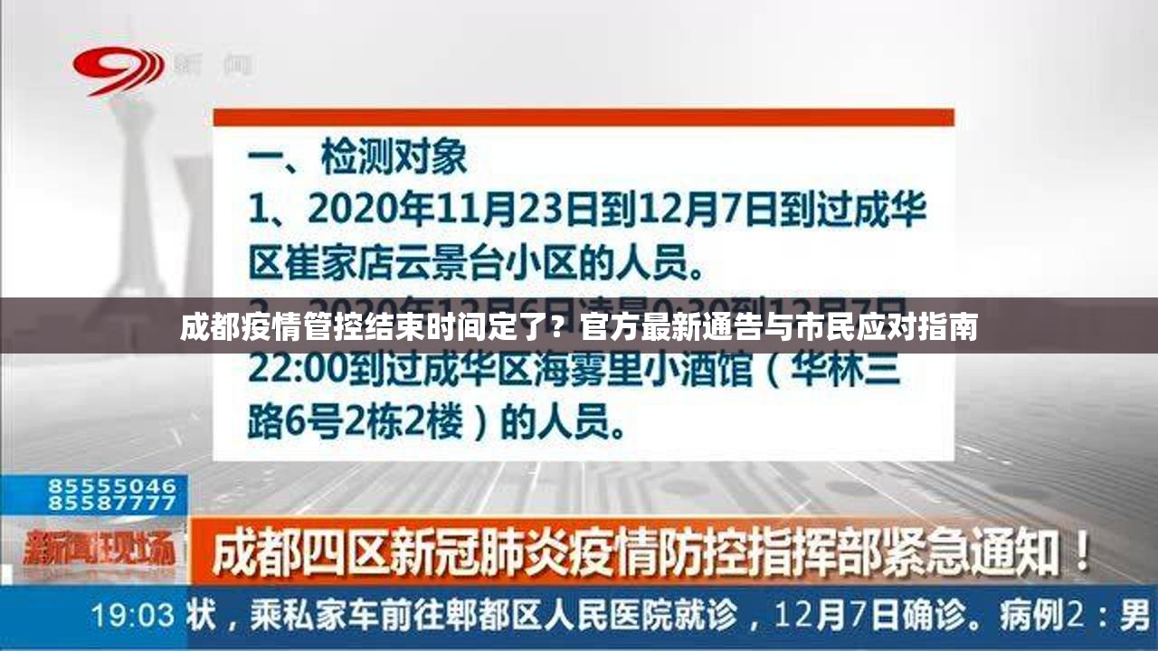 【独家深度解析】随着成都疫情防控进入常态化阶段,市民最关心的"何时能结束管控"成为全网热搜话题,本文基于成都卫健委、市疫情防控指挥部最新通告(2023年11月15日更新),结合近三月政策调整轨迹,首次...