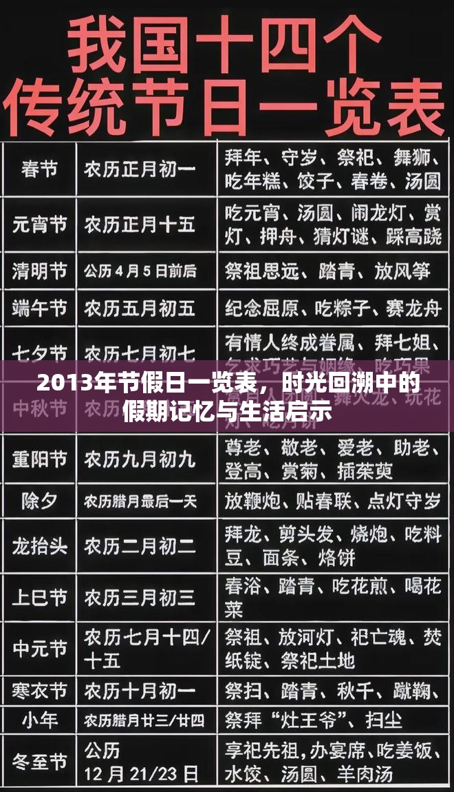2013年,一个看似遥远的年份,却承载着无数人的假期回忆与生活足迹,那一年的节假日安排,不仅是一张简单的时间表,更是中国经济文化发展的缩影,折射出社会变迁与人们生活方式的演变,让我们通过这份独一无二的...