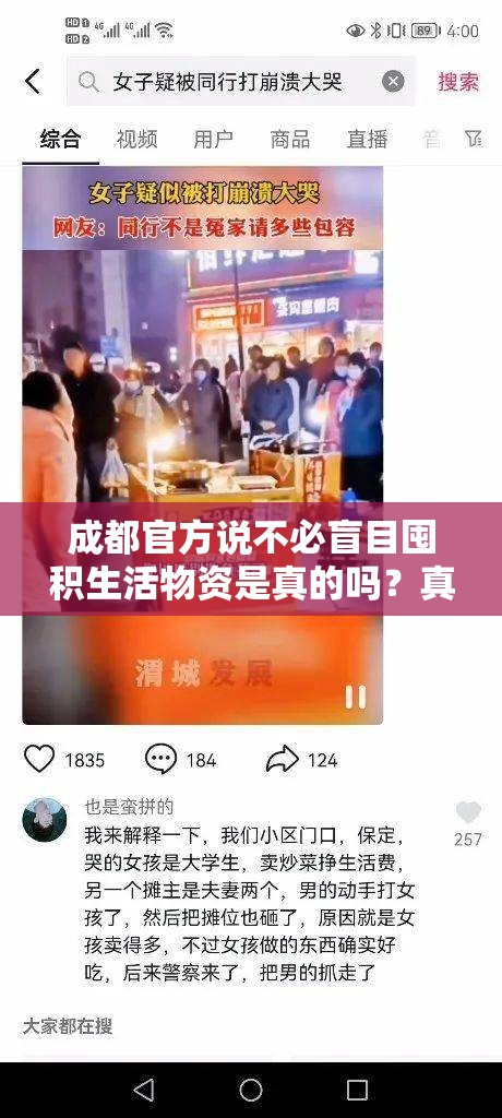 成都官方发布声明,呼吁市民“不必盲目囤积生活物资”,这一消息迅速引发热议,不少市民疑惑:在极端天气、突发公共事件频发的背景下,官方表态是否可靠?囤货潮背后,究竟是过度焦虑,还是理性防范?成都的声明并非...